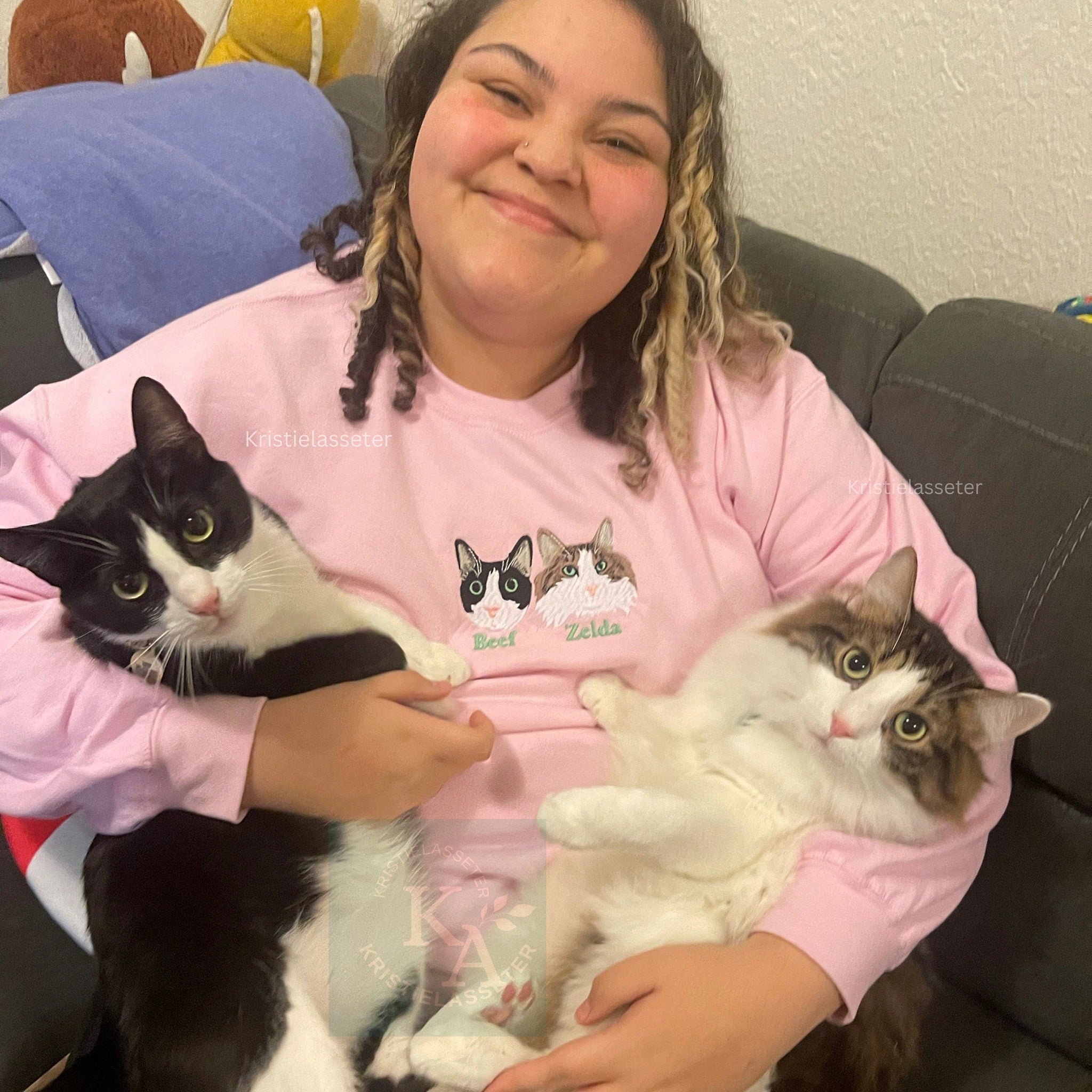 Custom Embroidered Pet Sweatshirt from Your Photo, Personalized Pet Face and Pet Name Hoodie, Pet Portrait Shirt, Dog Lover Gift