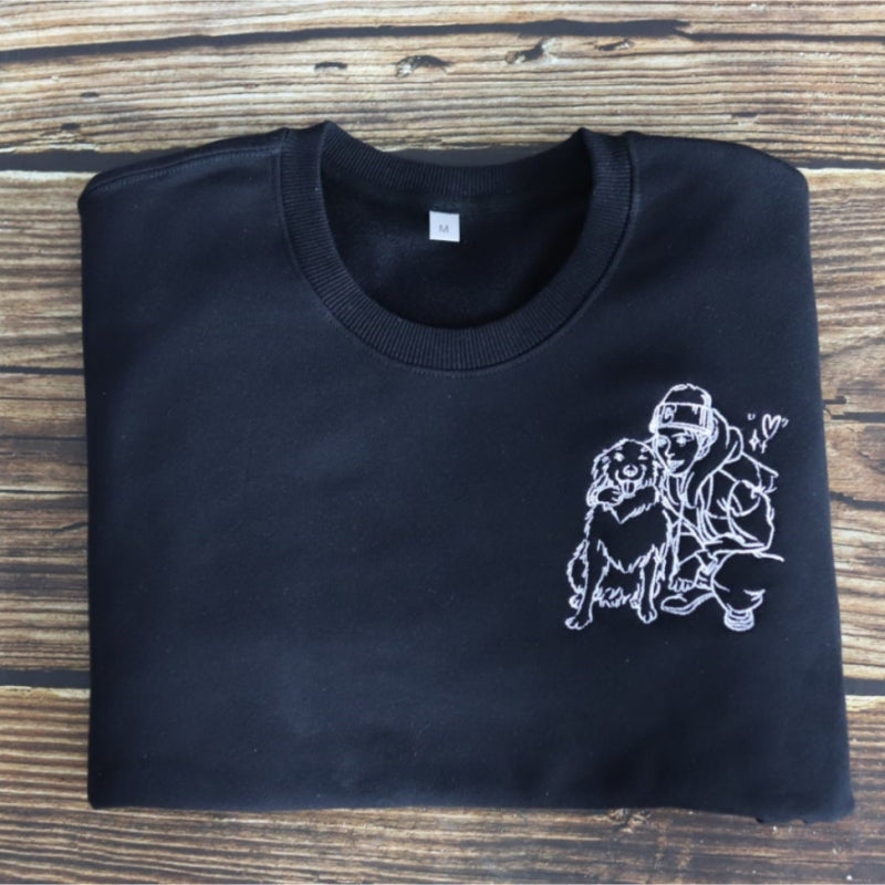 Our personalized portrait hoodies and sweatshirts are ideal! Simply send us a photo of you and your loved one, and we'll turn it into a custom portrait that will be embroidered on a high-quality hoodie or sweatshirt.