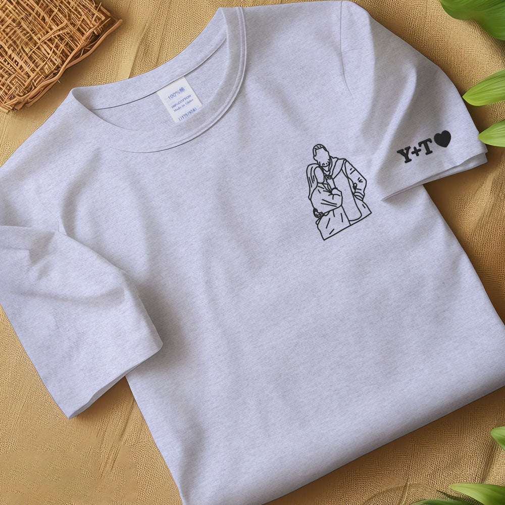 Our personalized portrait hoodies and sweatshirts are ideal! Simply send us a photo of you and your loved one, and we'll turn it into a custom portrait that will be embroidered on a high-quality hoodie or sweatshirt.