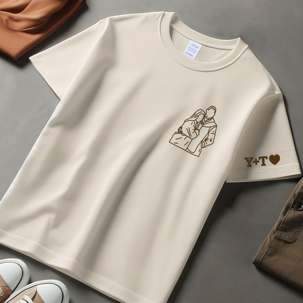 Custom Couple Portrait EMBROIDERED T-shirt, Photo from Portrait T-shirt, Matching T-shirt for Couples, Valentine Couple Gift
