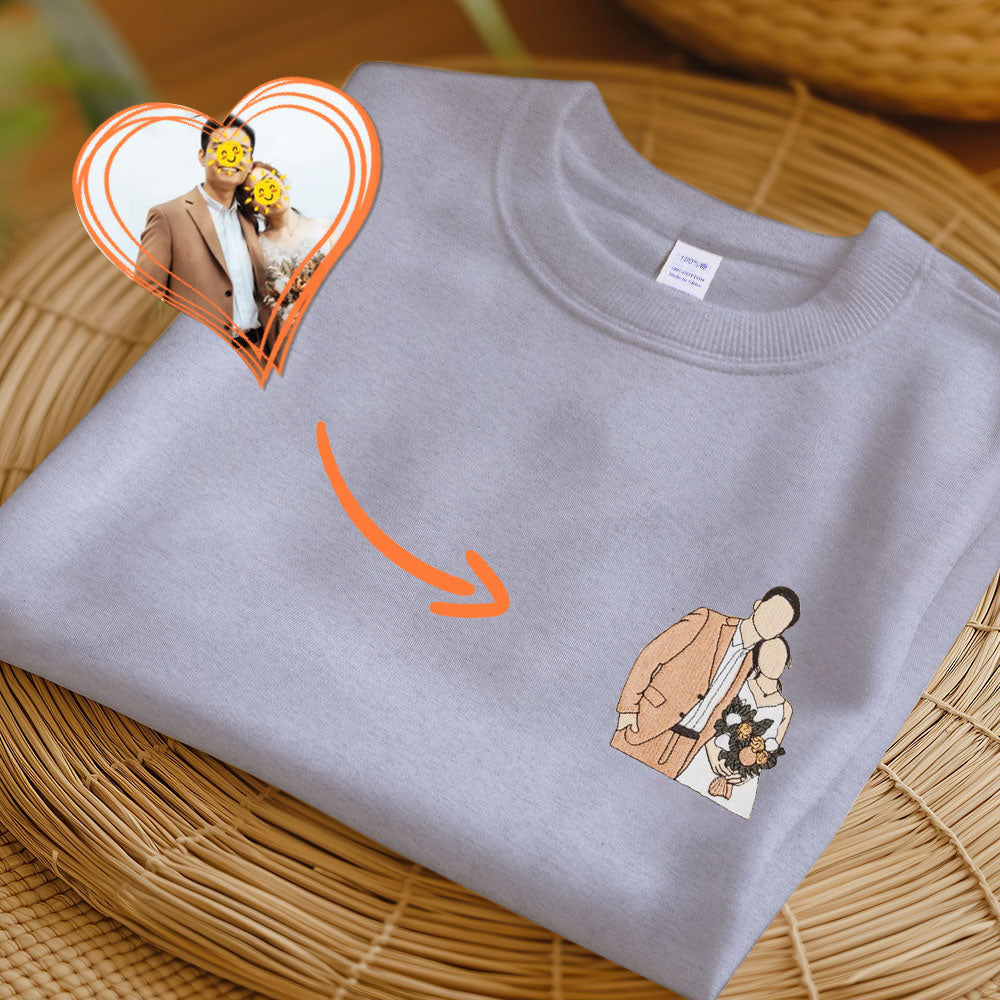 Custom Embroidered Sweatshirt,Custom Embroidered Hoodie,Custom Photo Portrait,Custom Embroidered Shirt,Family Faceless Portrait Gift Couple
