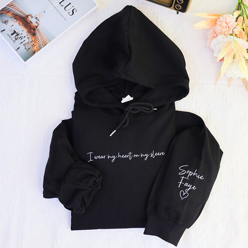 Personalized Mom Hoodie With Kid Names I Wear My Heart On My Sleeve